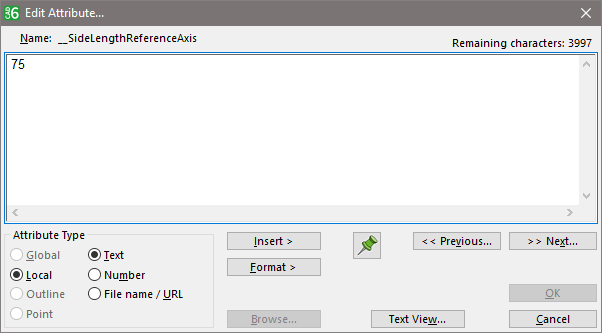 You can use Advanced Text Capabilities (consisting of Formatting, Attributes, Variables, Statements, Mathematical Terms) in all texts, dimensions, variables, and attributes!
