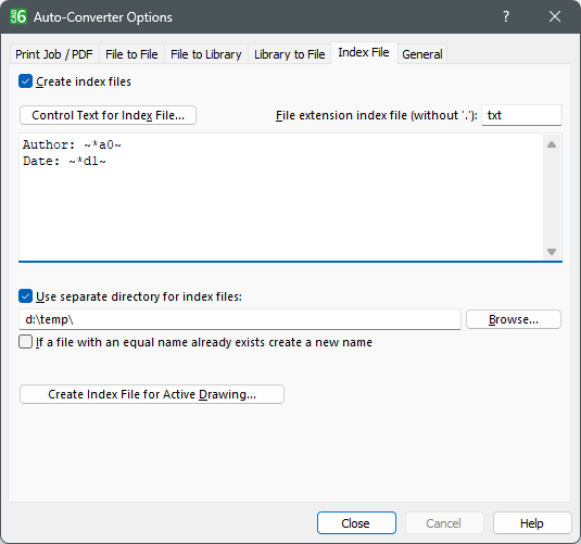 "Auto-Converter Index File" Dialog