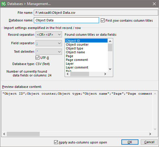 "Database Options" Dialog