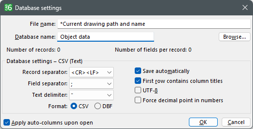 "Database Settings" Dialog